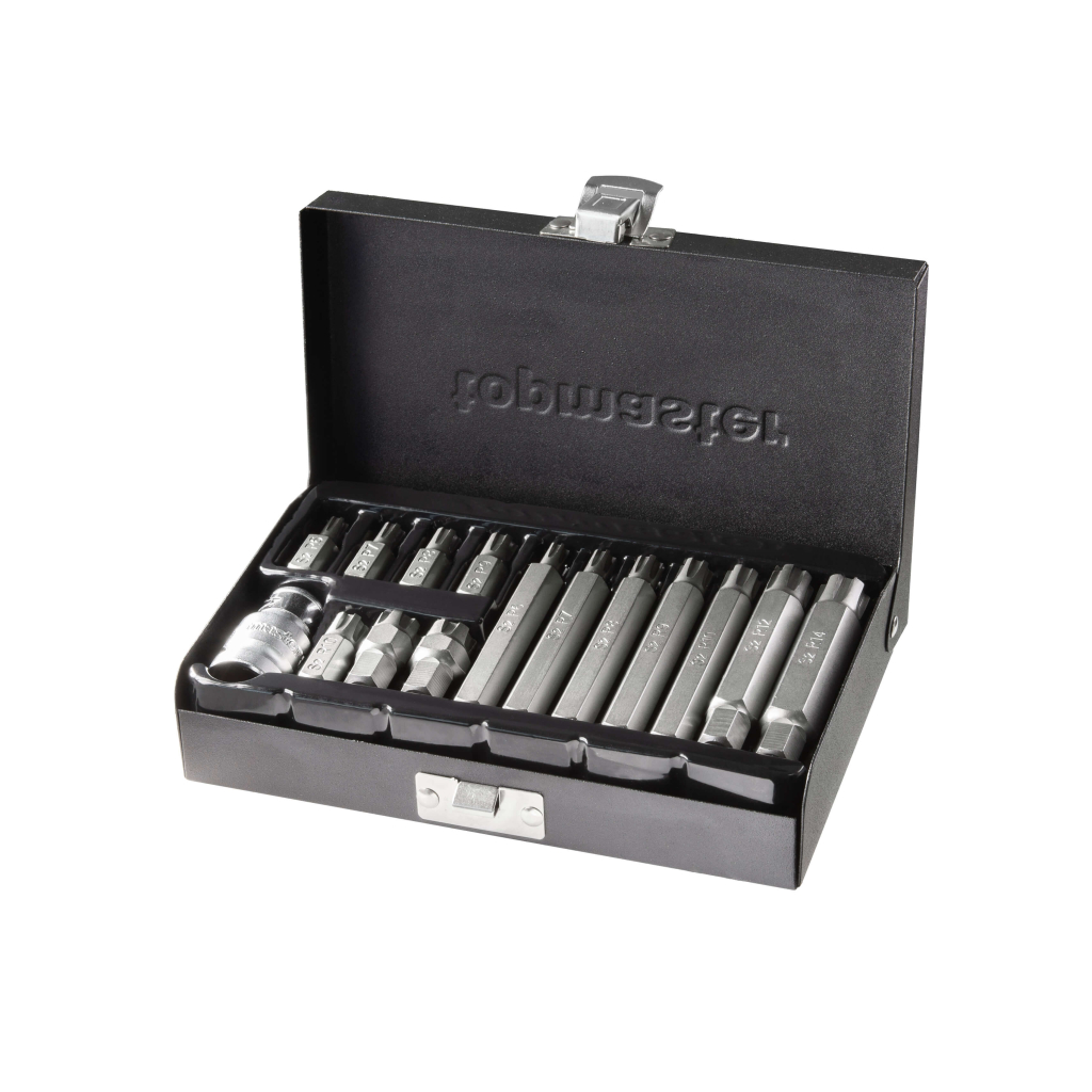 Komplet sadrži 14 bitova dužine 30 i 75 mm i veličine M6. M7, M8, M9, M10, M12, M14, kao i ½“ adapter