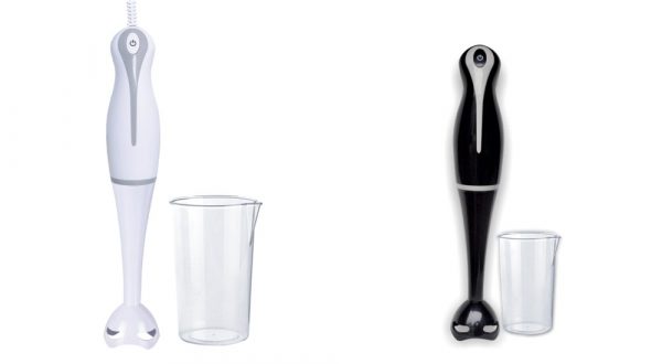 Blender ručni sa posudom SP-1112-AC 200-250W. Štapni blender sa 1 brzinom. Jako I izdržljivo sečivo od inoxa. Ergonomski plastični rukohvat. Baždarena posuda 550ml. U beloj I crnoj boji