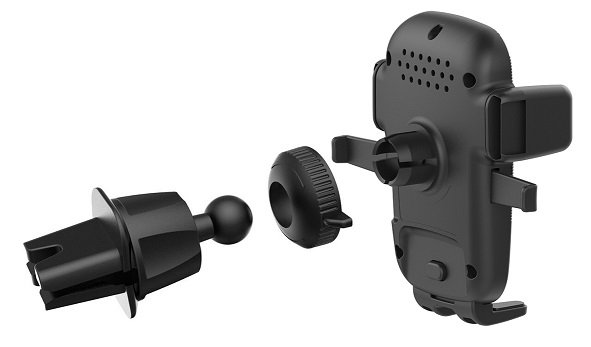 Auto držač za telefon sa bežičnim punjačem Platinet PUCHMB, snaga punjenja 10W, dva puta brže punjenje u odnosu na dosadašnje punjače, montaža na otvor za ventilaciju, rotacija 360 stepeni