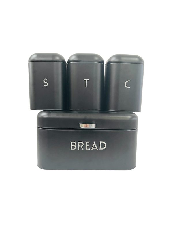 Kutija za hleb+posude za kuhinju set crni