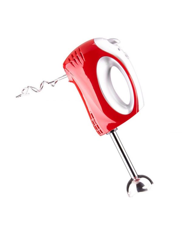Mikser Voltz V51110F 300W crveni. Dugme za izbacivanje dodatne opreme. 2x18cm hromirane kuke za mešanje testa. 2x18cm hromirane mešalice za jaja i kajmak. Osovina blendera od nerđajućeg čelika. Sigurnosni sistem koji sprečava rad blendera osim ako se ne izabere postavka brzine i pritisne TURBO dugme. Ergonomski dizajn za jednostavnu upotrebu i čišćenje. 220-240V~, 50/60Hz, ručni mikser brzine 300W