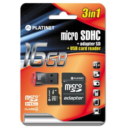MSD Platinet 16 GB+čitač+adapter