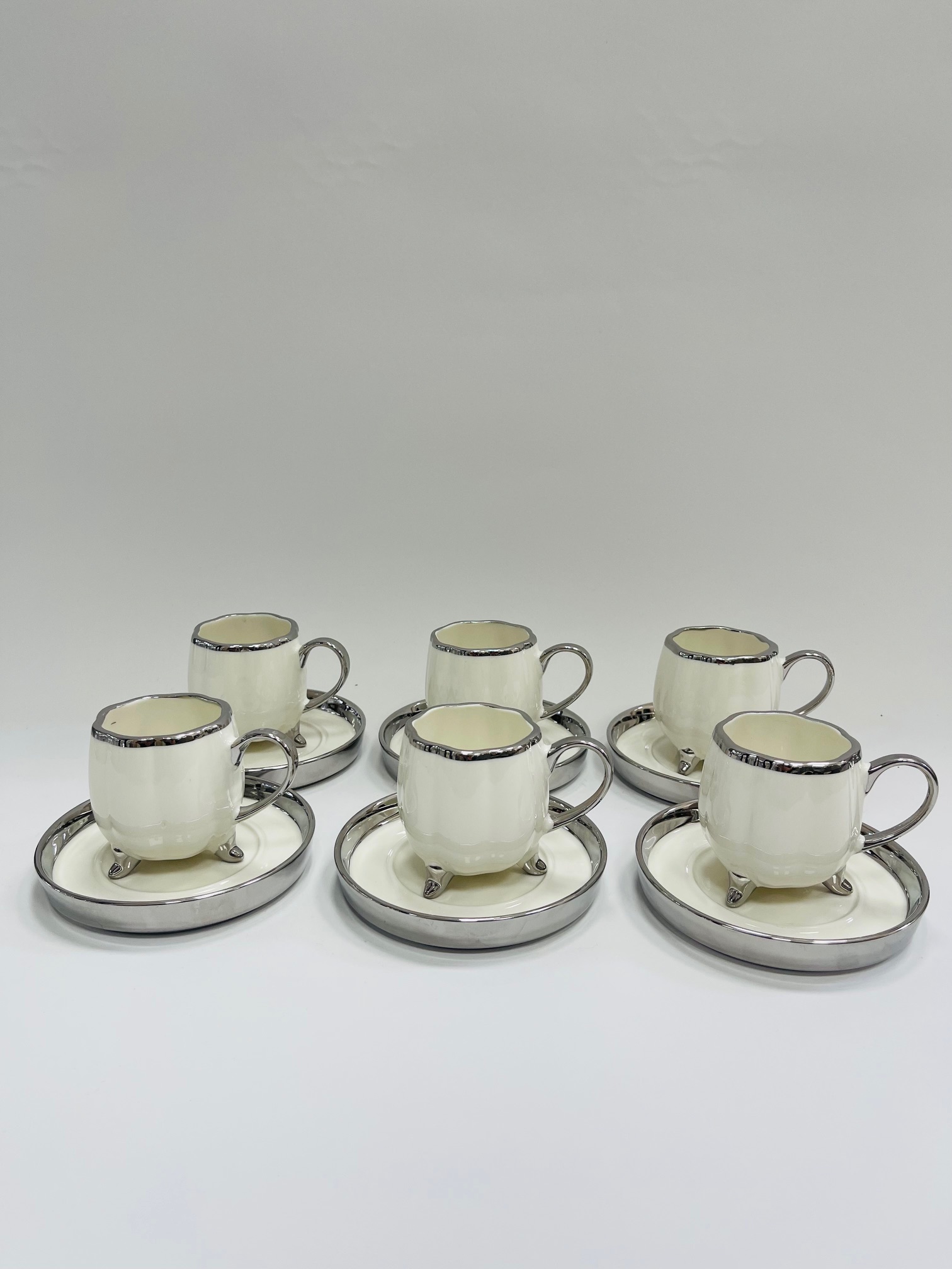 Set šolja sa tacnicama belo/sive