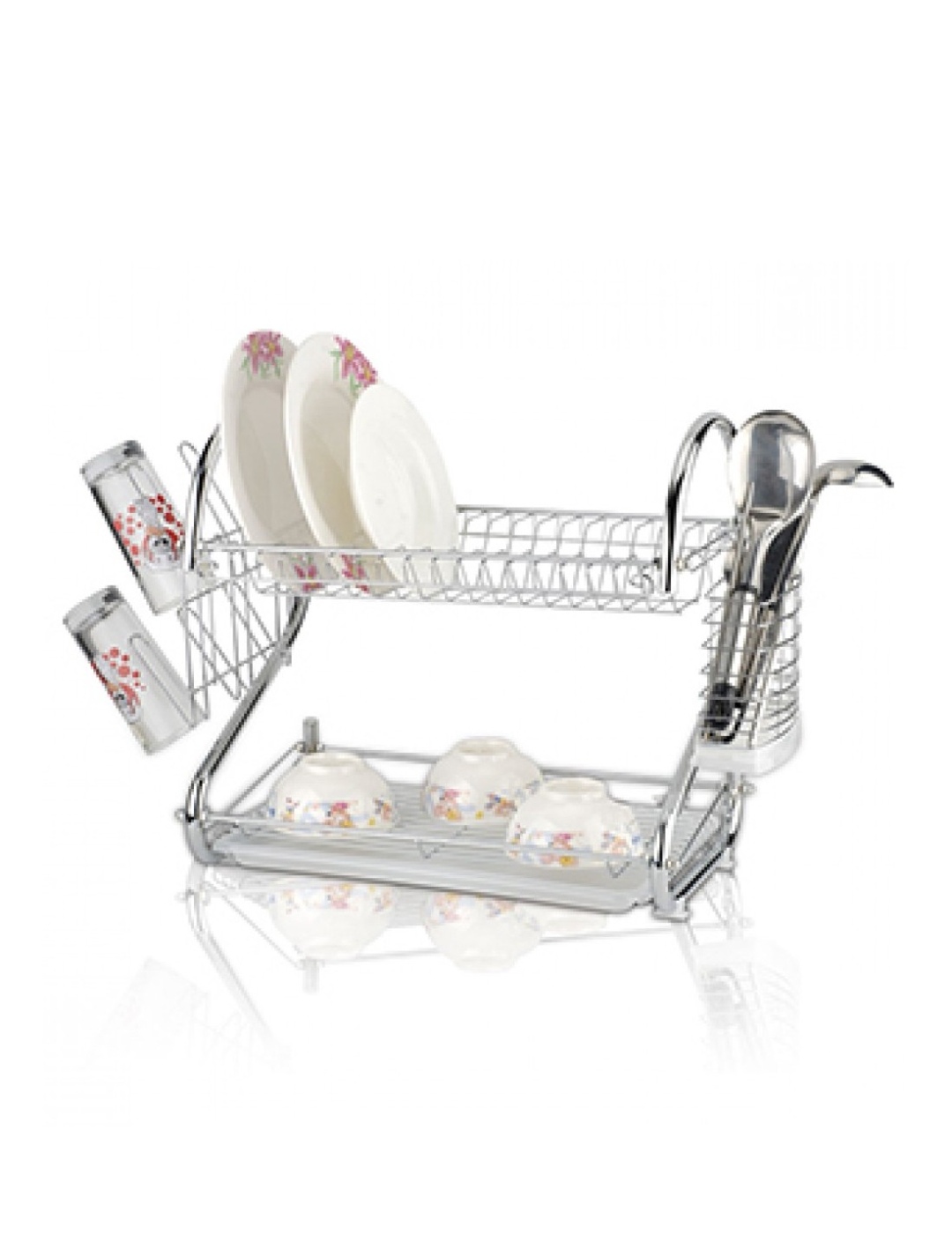 Hromirane cevi i hromirana žica Prozirna ploča za lako čišćenje Držač pribora za jelo Držač za 6 čaša Dimenzije: 55,0×25,0x23,0 cm